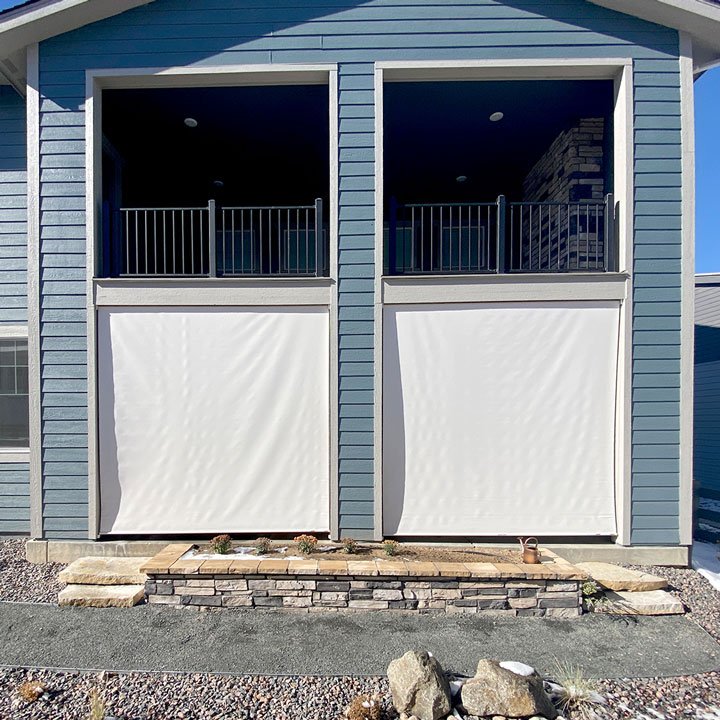 We offer manual cable-guided roller shades for patios and decks. These are a great option because they are connected on the top and bottom to keep the shade secure during light wind or storms.